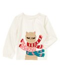 かわいらしいラマが首にカラフルなスカーフを沢山巻いて・・・・ユニークですよね。 ホワイトのベースにカラフルな色合いがとっても目を引くTシャツです。 ロングスリーブなので、何にでも合わせやすいですし、それぞれのアクセントの色を使えば差し色になって、コーディネートしやすくなっています。 素材:100%コットン ラマちゃんがしているスカーフには刺繍がしてあって、ワンポイントに裾のフリンジも再現されています。