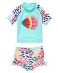 ラッシュガードがセットになったとってもかわいい水着です。 フィッシュの3Dアップリケがとってもかわいいです。 魚のウロコをフリフリで表現♪ 腕+パンツ部分はレインボーで海の中をイメージしていて本物の魚になったみたい。 なかなか無いデザインで目を引きます! 80%ナイロン20%スパンデックス UPF 50+ サンプロテクション 洗濯機:可能